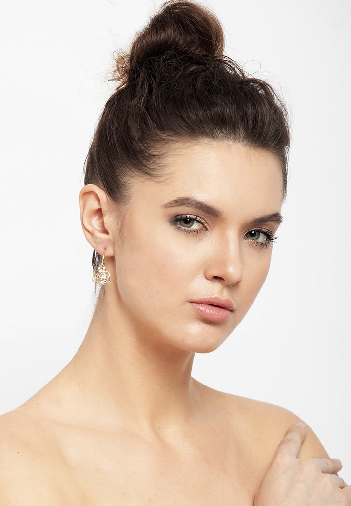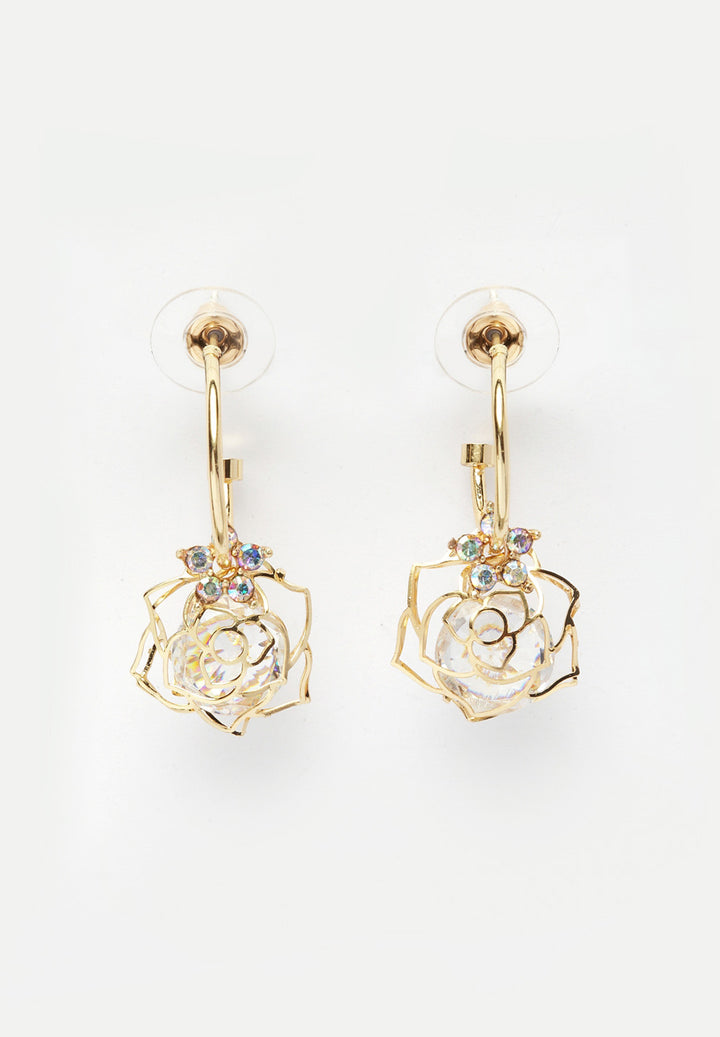 La rose en gold - Forgyldte øreringe med krystaller i blomsterform. Sæt sammen med formel påklædning eller med en rosafarvet kjole perfekt til en date night.