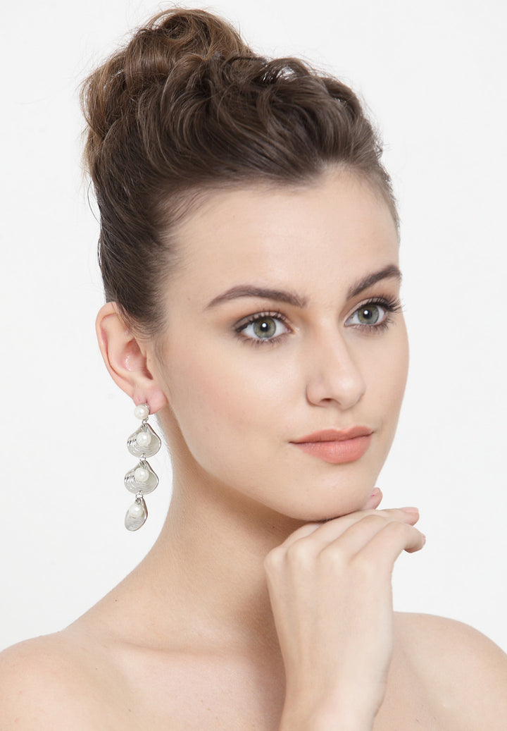 Skønheden ved havet og muslingeskaller er inkorporeret perfekt i disse smukke perleøreringe. Den sølvfarvede nuance fremhæver det kongelige look. Sæt den sammen med en blå kjole til en strandfest eller en soirée