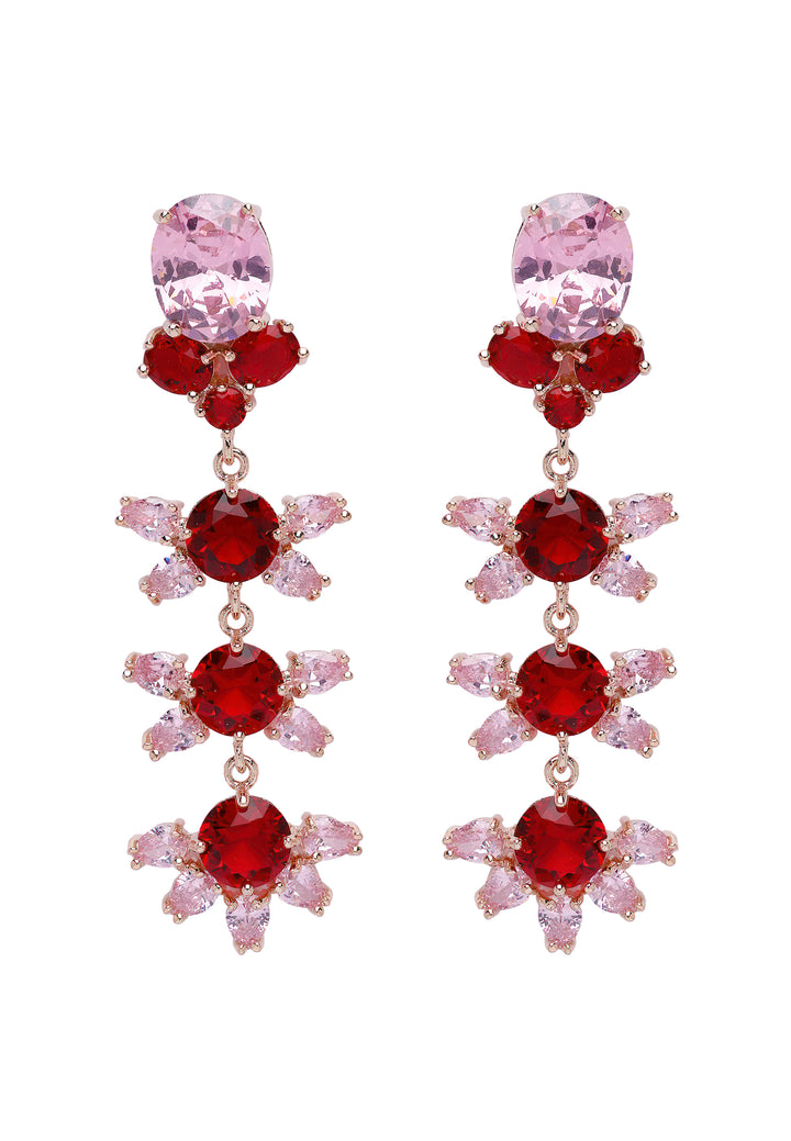 Die Diva Floral Dangle Earrings aus der Diva Collection sind ein atemberaubender Ausdruck von Eleganz und lebendiger Schönheit. Diese Ohrringe verfügen über ein exquisit florales Design, geschmückt mit funkelnden Zirkonia-Steinen in fesselnden Schattierungen von Hellrosa und Rot. Die hochwertigen Zirkonia-Steine sind langlebig und behalten über die Zeit ihren Glanz und ihre Lebhaftigkeit. Diese Ohrringe sind ein herausragendes Accessoire. Sie sind ideal, um jedem Outfit einen Hauch von Glamour zu verleihen, und machen sie zu einer unverzichtbaren Ergänzung jeder Schmuckkollektion.