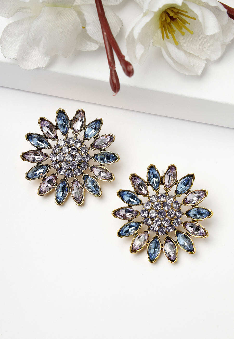 Gold-colored Crystal Floral Chimes Earrings are a chic and attractive accessory that glam up any ensemble. The delicate flower motifs and cascading chime-like structures on these earrings, made of high-quality...