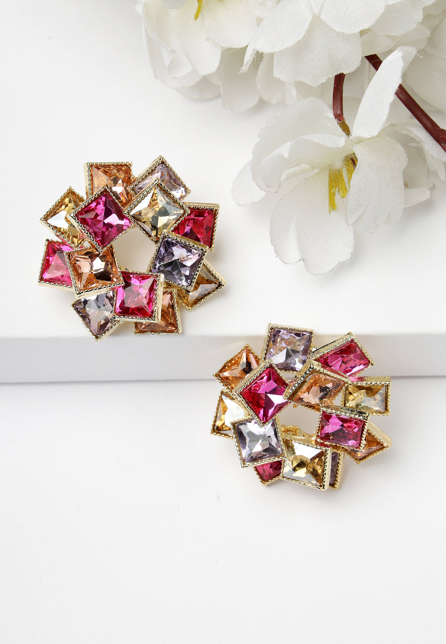 Geometrical earrings are made with crystals and plated with rhodium. The triangular shape and layering gives the soiree a symmetrical and elegant look and just the right amount of sparkle....