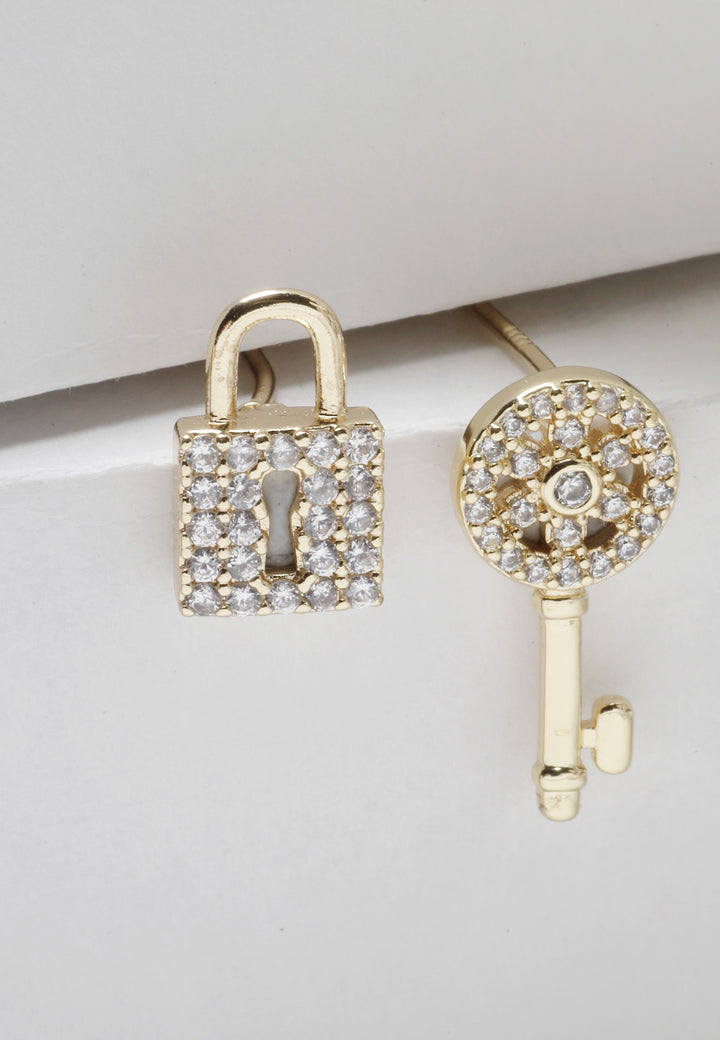 These stunning padlock and key stud earrings in a beautiful gold color are perfect for anyone who loves to accessorize with unique and stylish jewelry. Crafted with high-quality materials, these earrings are both durable and stylish. The padlock and key design of these earrings is both unique and eye-catching, featuring intricate detailing that adds to their overall charm. These earrings can be paired with a wide range of clothing styles. They can add some personality to an otherwise conservative outfit.