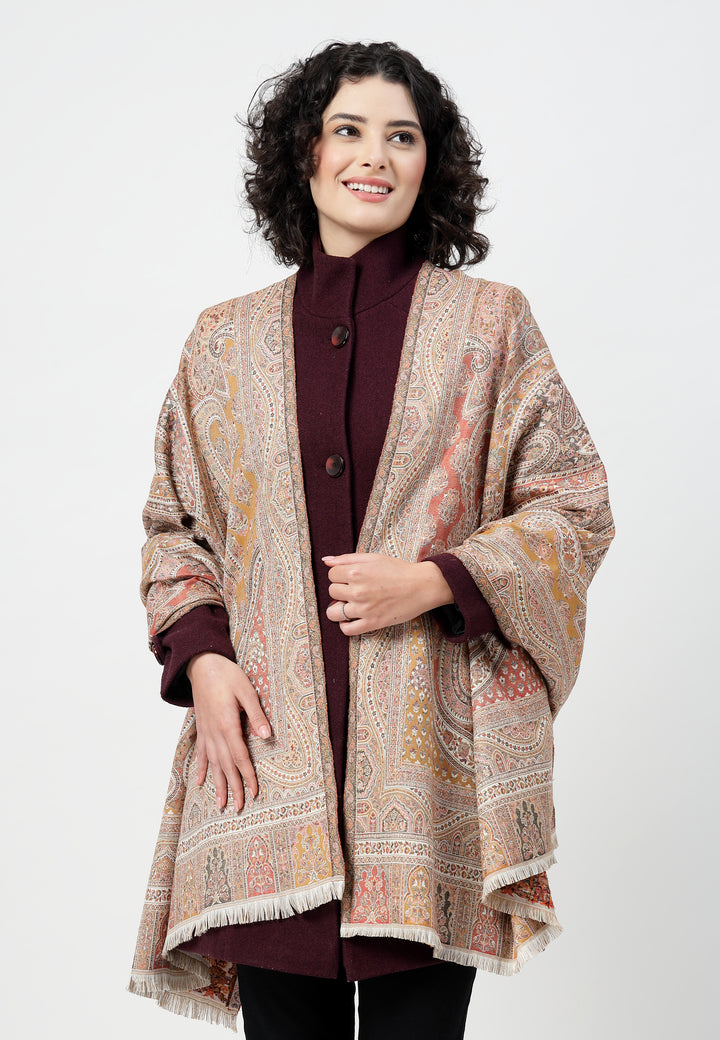 Hermosos diseños de Jamawar, en una suave tela de pashmina sintética y arte tradicional. Popular desde la era Mughal. Este chal tradicional de estilo cachemir tiene un diseño intrincado y calidad.
