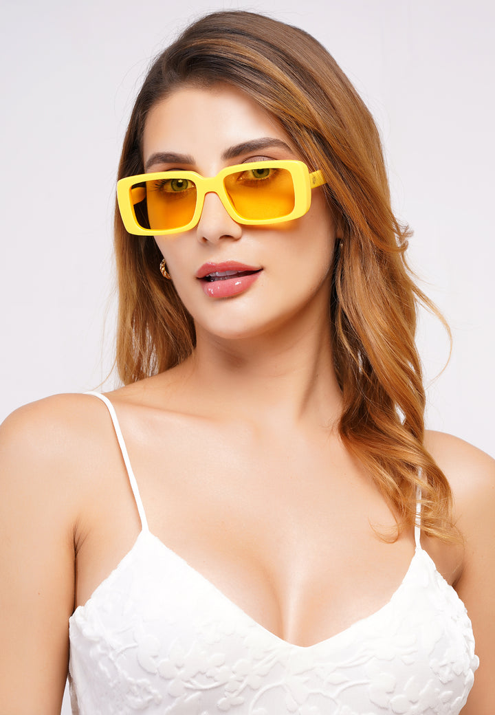 Queste montature rettangolari con bordi spessi uniscono un tocco vintage a un atteggiamento moderno—ideali per fare una dichiarazione di stile forte ma sofisticata, dalle passeggiate in città alle fughe al mare.