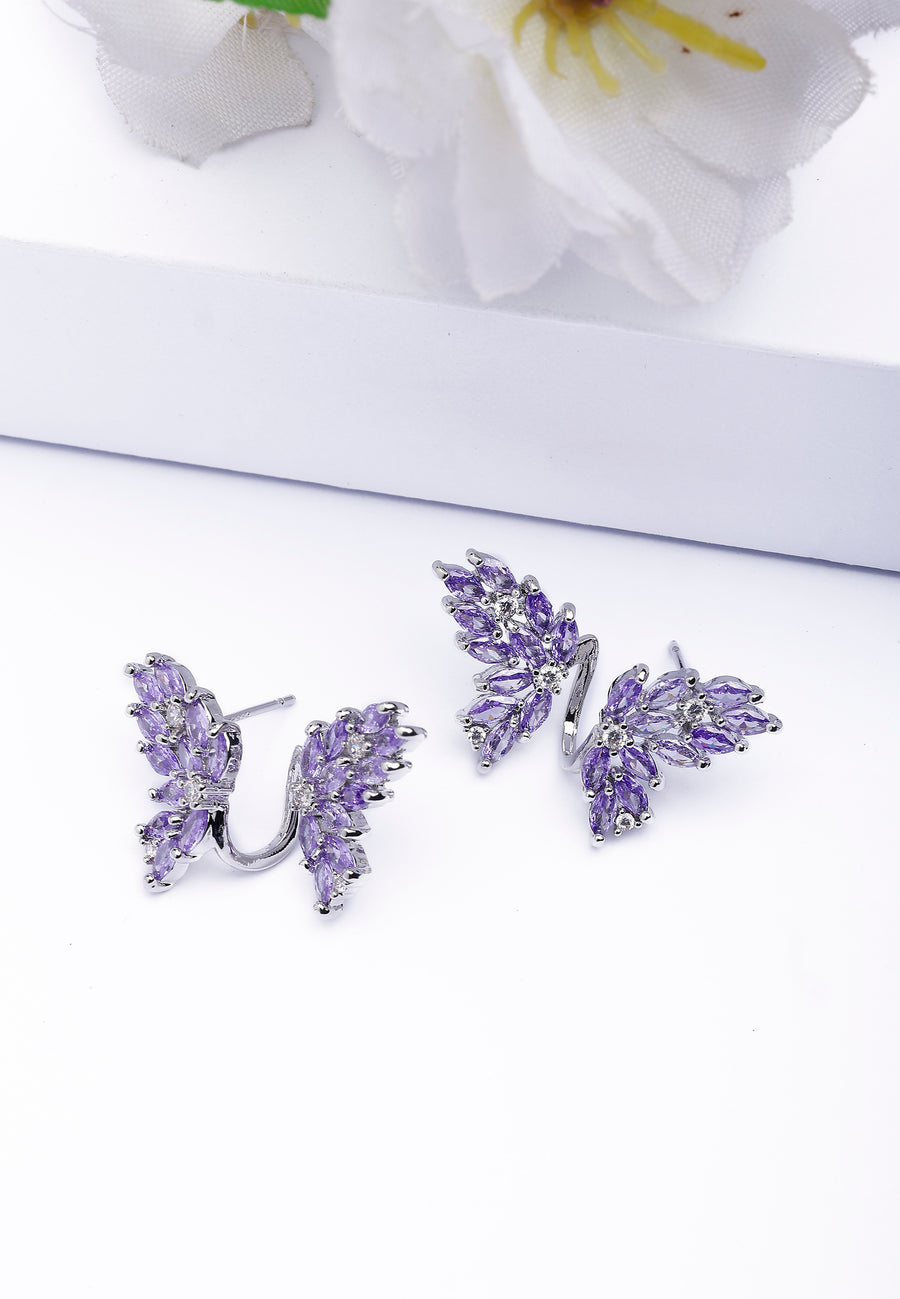 Te uderzające fioletowe i kryształowe kolczyki mają stylizowane, liściaste skupiska na wijącym się, osadzonym w pave łodydze, łącząc organiczne inspiracje z nowoczesnym blaskiem. Rozmiar : S : 1.8 cm X...