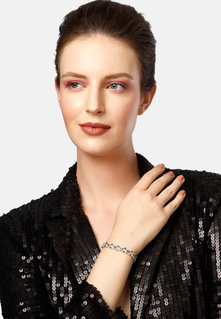 Diva Interlock-armbandet är silverfärgat och prytt med kubisk zirkonia. Det är ett fantastiskt smycke som utstrålar elegans och sofistikering. Detta armband är från diva-kollektionen. De högkvalitativa kubiska zirkoniastenarna är designade för att efterlikna briljansen hos äkta diamanter, vilket ger en lyxig look. Denna moderna och klassiska design gör det lämpligt för en mängd olika outfits, från avslappnat till formellt. Dess tidlösa design och glittrande stenar gör det till ett perfekt val för att förbättra din stil.