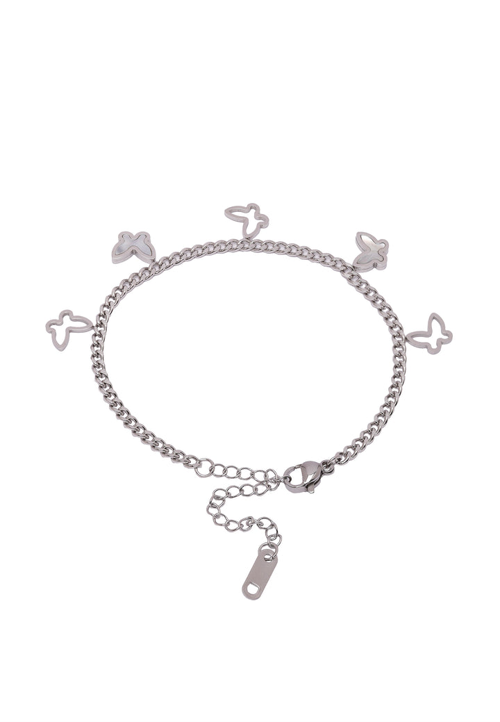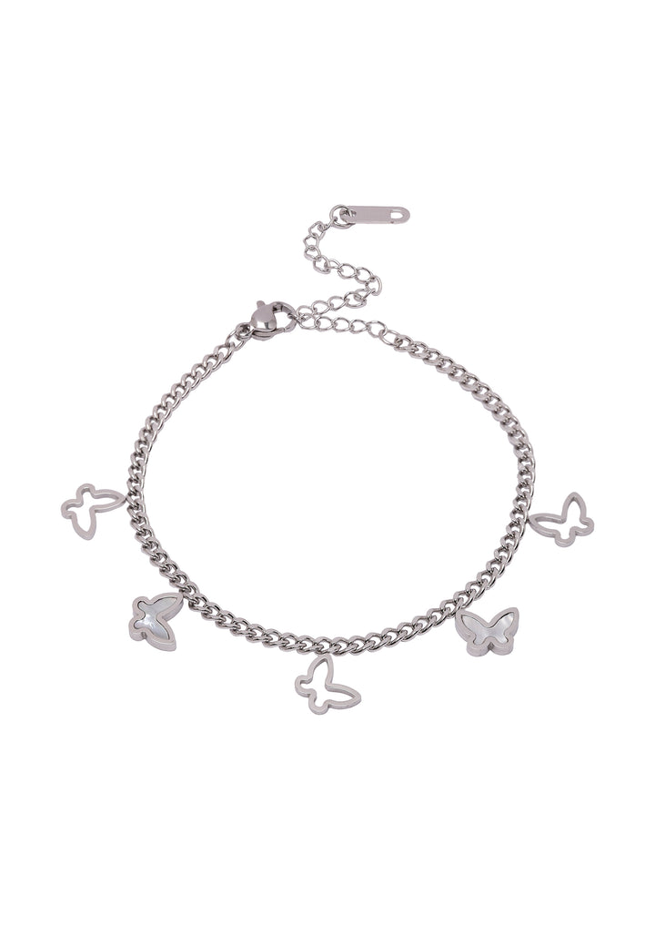 Diva Dainty Butterfly Bracelet från Diva Collection i silverfärg har en fin kedja prydd med fjärilsberlocker, vilket skapar en lekfull och feminin estetik. Armbandet visar små fjärilsberlocker, utformade med intrikata detaljer för att likna de ömtåliga vingarna hos fjärilar. Bär det ensamt för en subtil men charmig look, eller lager det med andra armband för ett trendigt och personligt stiluttalande. Inkluderingen av kubisk zirkonia ger en touch av glans, vilket ökar armbandets dragningskraft och gör det lämpligt för både vardagsbruk och speciella tillfällen.
