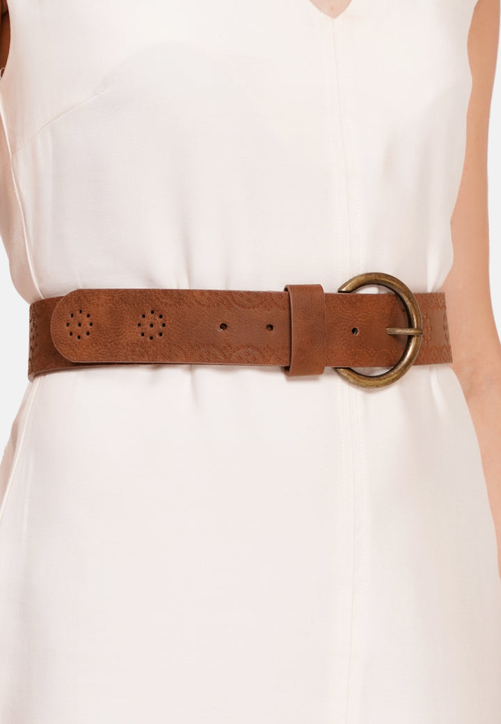 The Contemporary Designer Round Buckle Belt i brun färg är ett stilrent och modernt grepp om en klassisk accessoar, som kombinerar slätt läder med ett iögonfallande runt spänne som utstrålar en känsla av lyx och högkvalitativ design. Det runda spännet, som ofta har minimalistiska eller förfinade detaljer, skapar en stark fokuspunkt som tillför både sofistikering och en samtida kant till varje look. Detta bälte blandar sömlöst traditionell stil med modern estetik, vilket gör det till en mångsidig accessoar för en mängd olika tillfällen. Det runda spännet ger looken en polerad, designer-touch som höjer din arbetsklädsel.