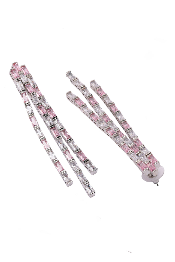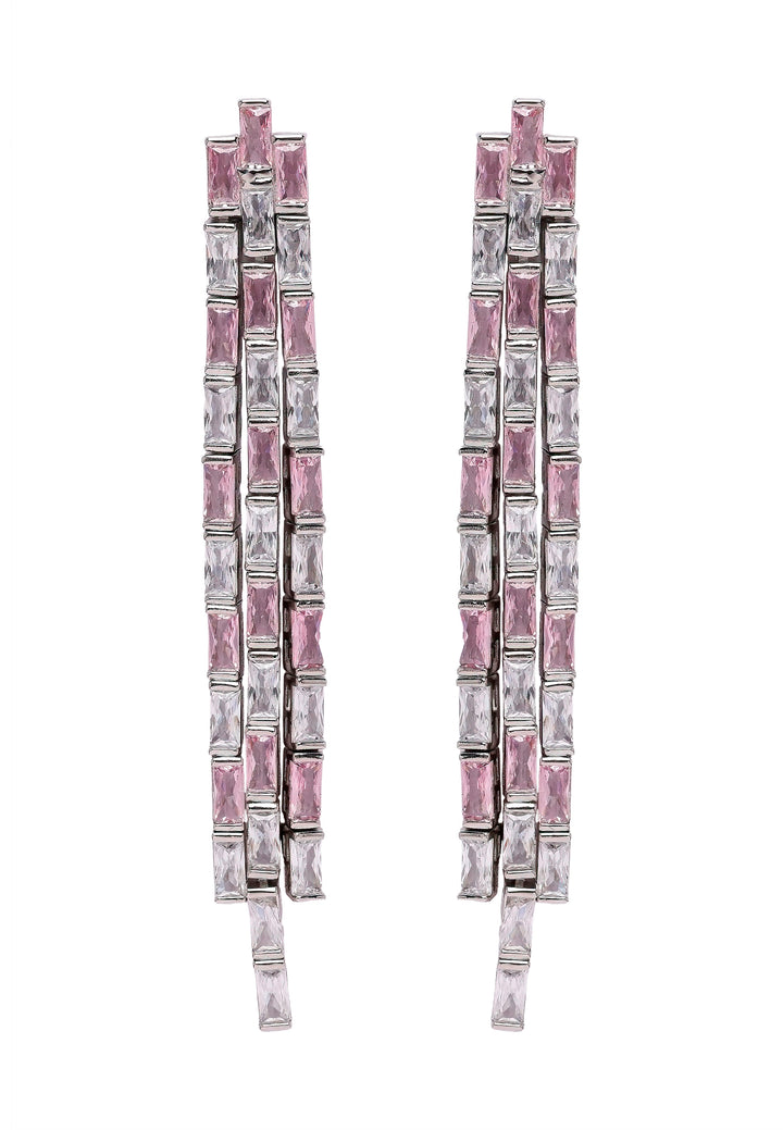 Diva Chain Tassel Earrings med rosa kubisk zirkonia är ett vackert och stiligt smycke som förenar modern estetik med klassisk elegans. Dessa örhängen kommer från Diva-kollektionen. Deras distinkta tre-tasseldesign, som har en längre mitttassel och två kortare sidotasslar, ger ett dynamiskt och välbalanserat utseende som fungerar bra för olika tillfällen. De ser fantastiska ut med aftonklänningar eller cocktailklänningar, vilket ger en touch av sofistikering och elegans. Dessa örhängen kan också ge en touch av glamour till mer avslappnade outfits, vilket gör dem till ett utmärkande smycke för alla tillfällen.