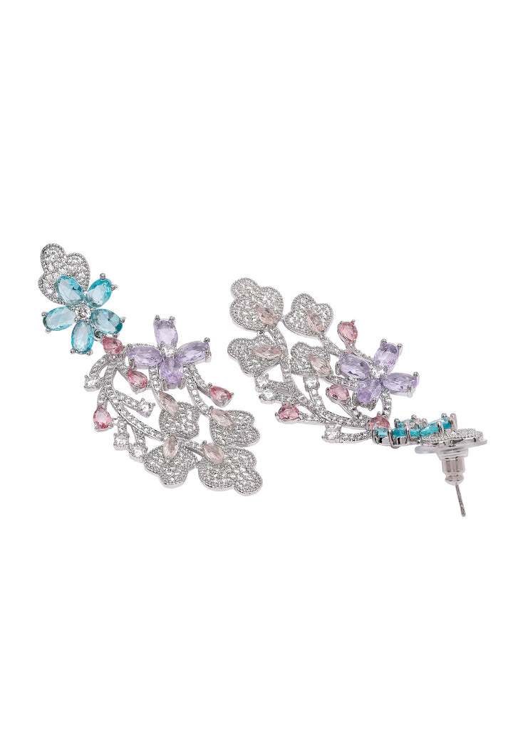 Diva Floral Drop Earrings från Diva Collection i lila, grön och silver nyanser av kubisk zirkon är en härlig och färgglad accessoar. Den blommiga designen ger en romantisk och lekfull känsla till örhängena, vilket gör dem till en charmig accessoar. Dessa örhängen är mångsidiga och kan bäras vid olika tillfällen, från formella evenemang till avslappnade utflykter. De är perfekta för att lägga till färg och sofistikering till din outfit. Perfekta för dem som älskar färgglada smycken.