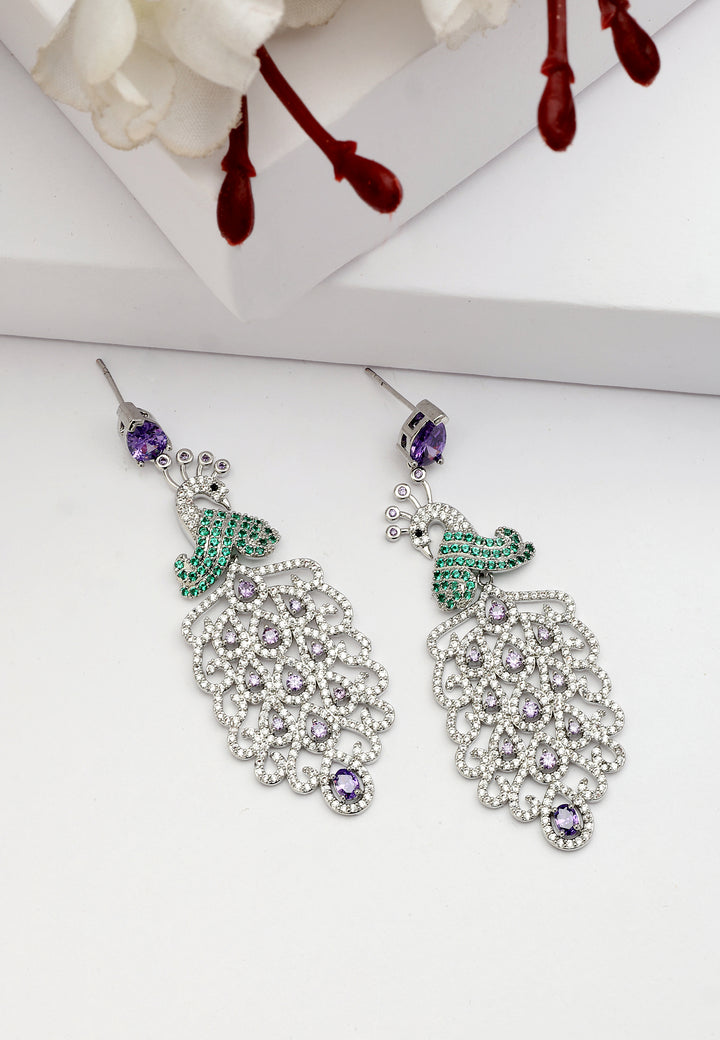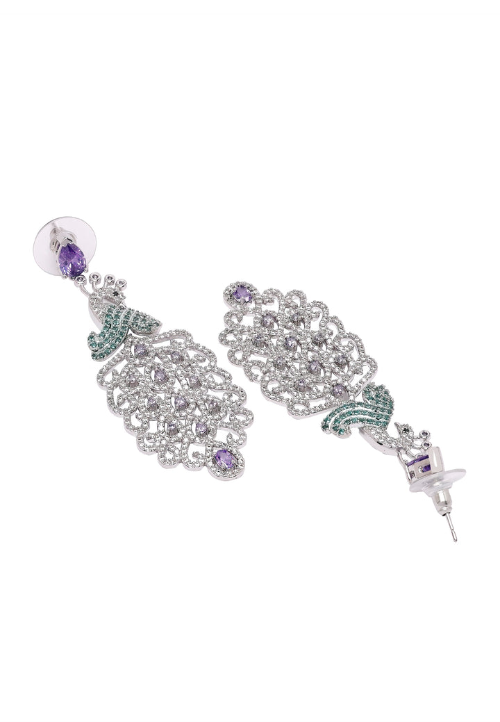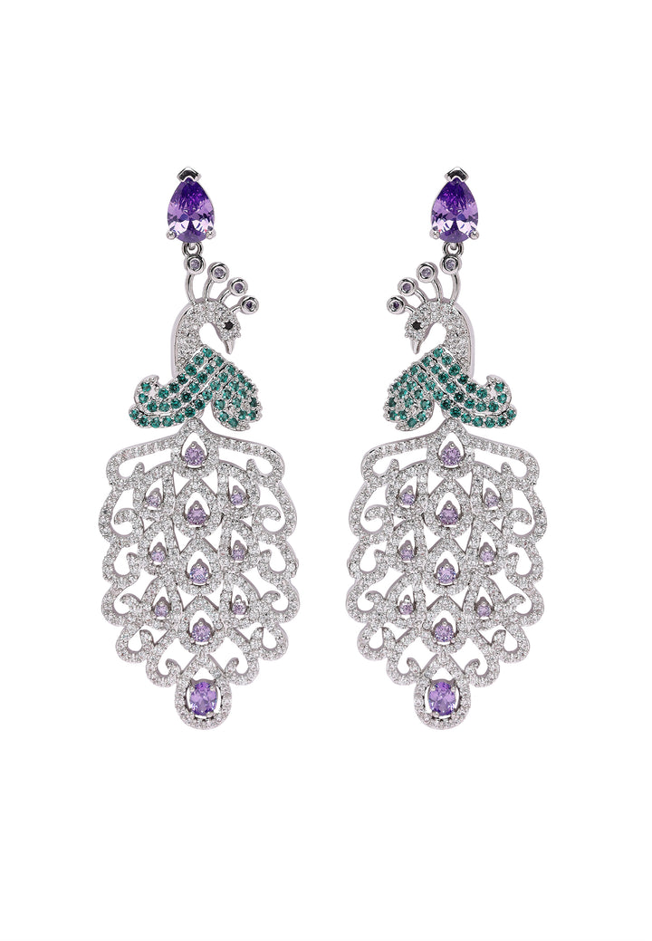 Diva Beautiful Peacock Drop Earrings från Diva Collection har gröna och blå nyanser med en silverfärgad cubic zirconia fjäderdroppe som är en fantastisk accessoar. Dessa örhängen har sannolikt en design inspirerad av påfågelns fjädrar, kända för sina livfulla färger och intrikata mönster. Fjäderdroppen är i silver vilket ger en touch av elegans. Bär dessa örhängen med en enkel blus eller klänning för att lägga till en färgklick och elegans till din vardagsklädsel. Den påfågelinspirerade designen gör dem till en slående accessoar både dag och natt. Dessa örhängen kommer garanterat att bli en utstickande del i varje smyckeskollektion.