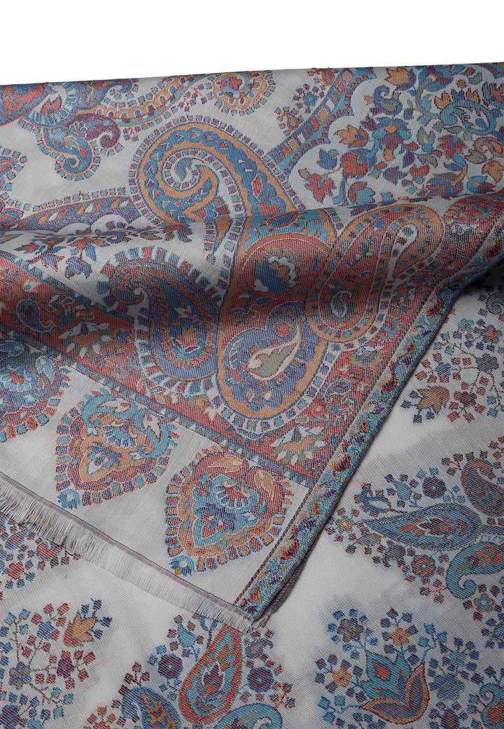 Vackra Jamawar-mönster, på ett mjukt faux pashmina-tyg och traditionell konst. Populära sedan Mughal-eran. Denna traditionella kashmiriska stil sjal har intrikata mönster och kvalitet.