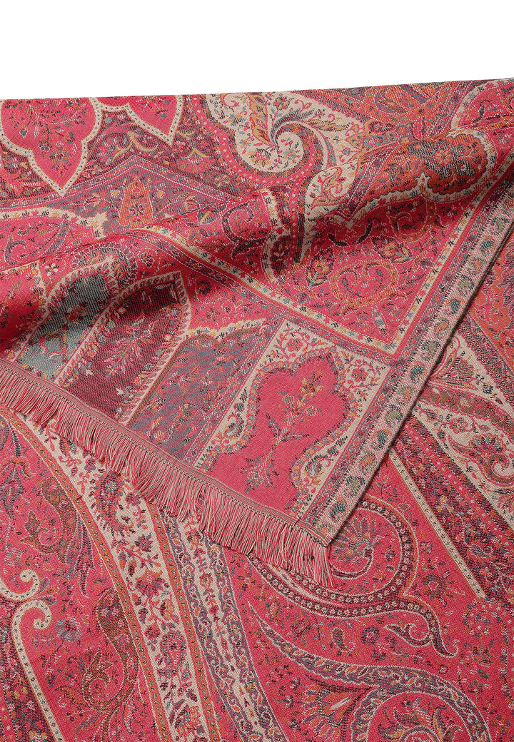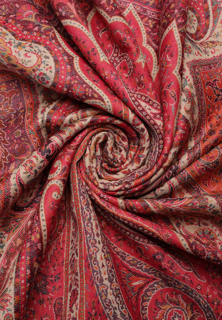 Vackra Jamawar-mönster, på ett mjukt faux pashmina-tyg och traditionell konst. Populära sedan Mughal-eran. Denna traditionella kashmiriska stil sjal har intrikata mönster och kvalitet.
