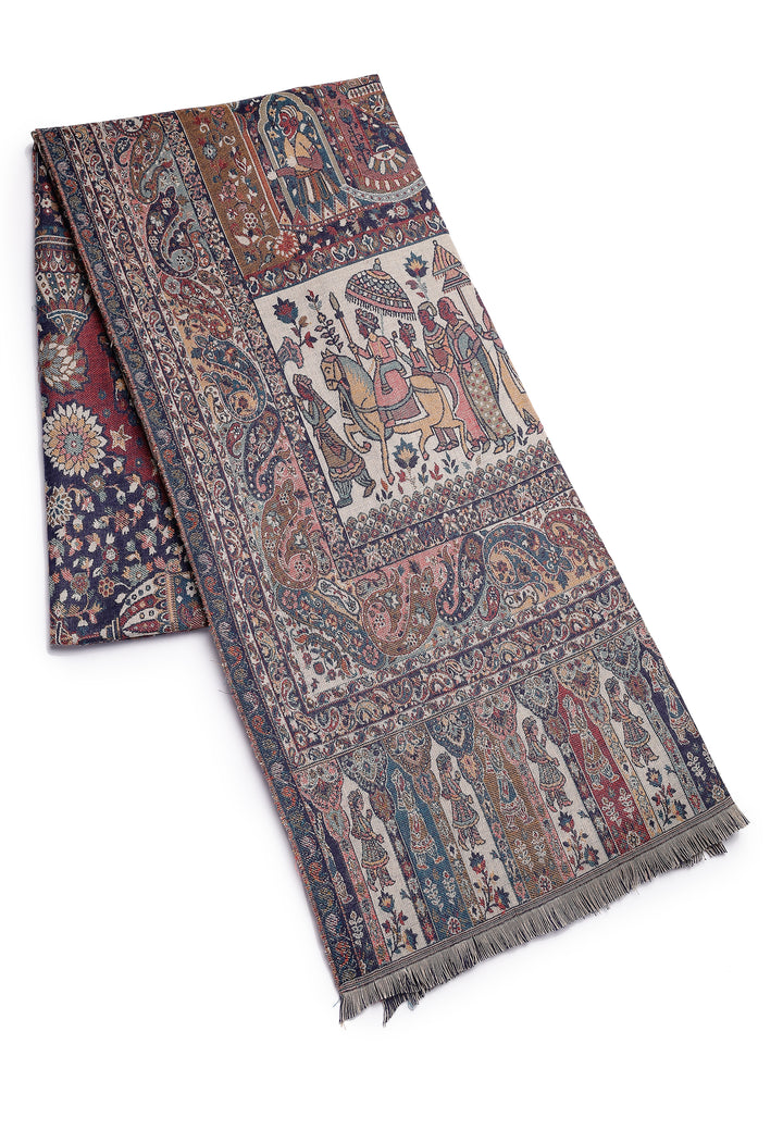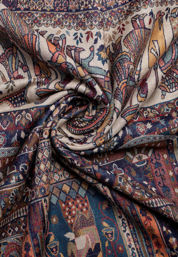 Vackra Jamawar-mönster, på ett mjukt faux pashmina-tyg och traditionell konst. Populära sedan Mughal-eran. Denna traditionella kashmiriska stil sjal har intrikata mönster och kvalitet.