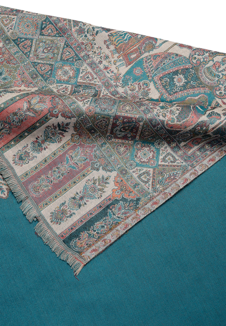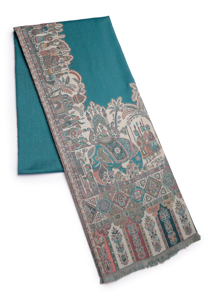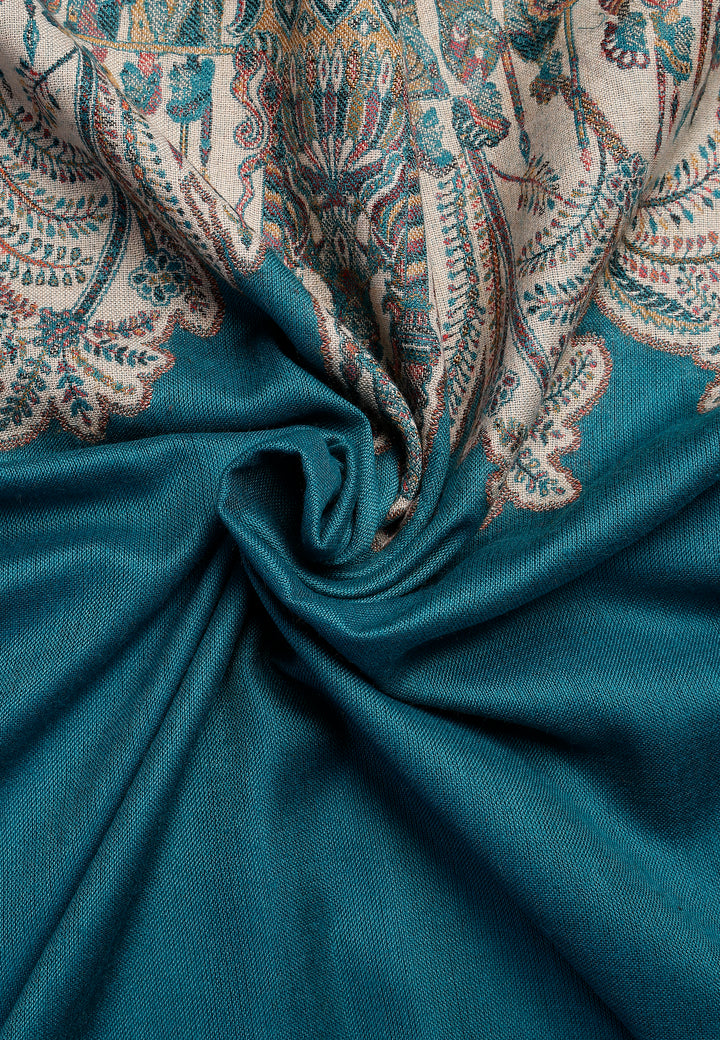 Vackra Jamawar-mönster, på ett mjukt faux pashmina-tyg och traditionell konst. Populära sedan Mughal-eran. Denna traditionella kashmiriska stil sjal har intrikata mönster och kvalitet.