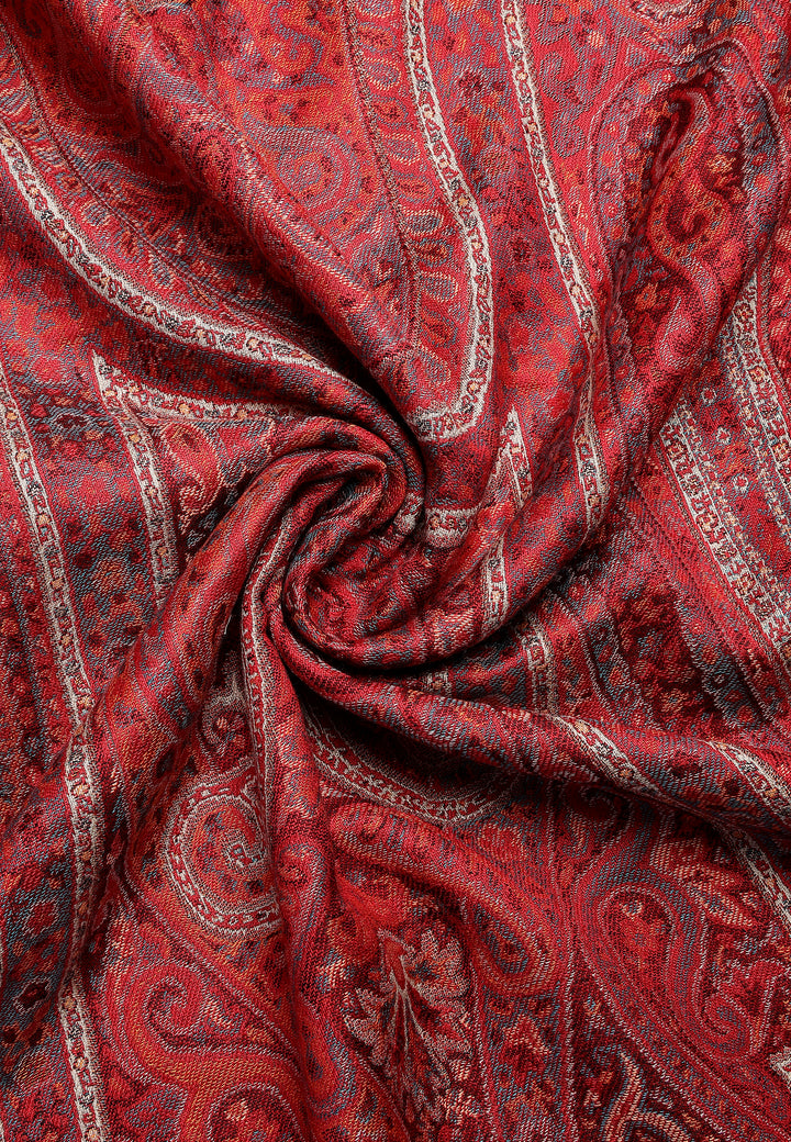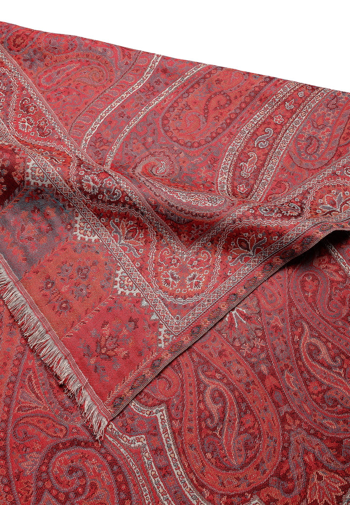 Vackra Jamawar-mönster, på ett mjukt faux pashmina-tyg och traditionell konst. Populära sedan Mughal-eran. Denna traditionella kashmiriska stil sjal har intrikata mönster och kvalitet.