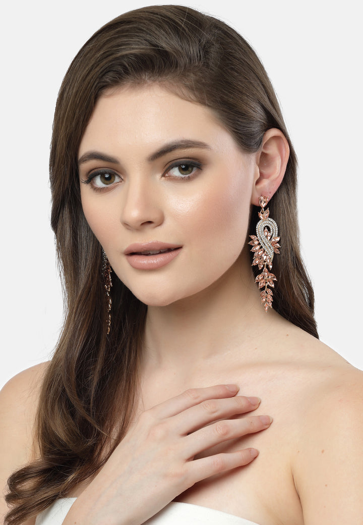 Dette smukke par Crystal Leaf øreringe er ideelle til enhver fest! Med blændende sølvsten i midten og guldbelagte sten, der pryder et delikat bladmønster, er disse udsøgte øreringe lavet af materialer af høj kvalitet. Disse øreringe er designet til at være stærke og langtidsholdbare med stor sans for detaljer. de smukke krystalbladsøreringe er et alsidigt tilbehør, der kan parres med en række farver og stilarter.