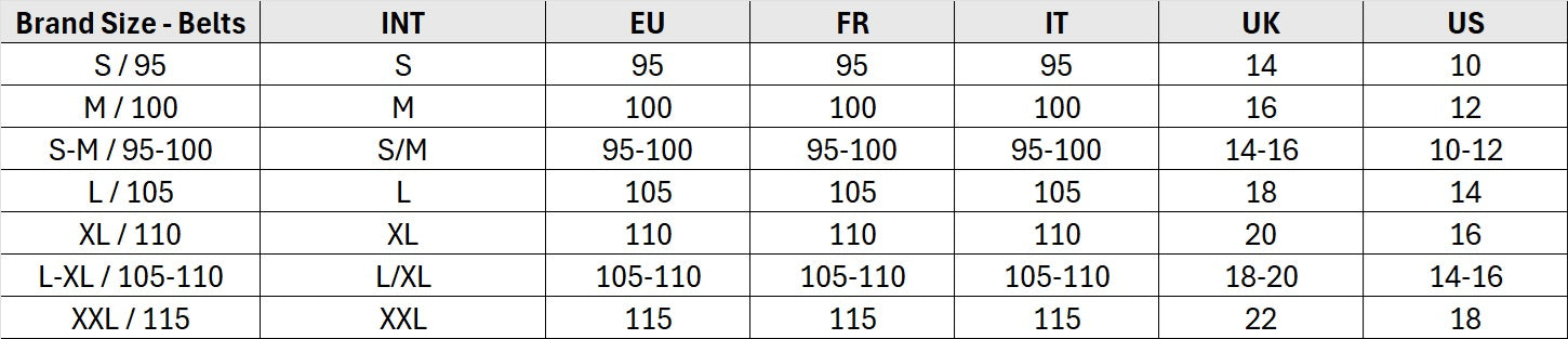 S-M / 95-100 cm, L-XL / 105-110 cm |