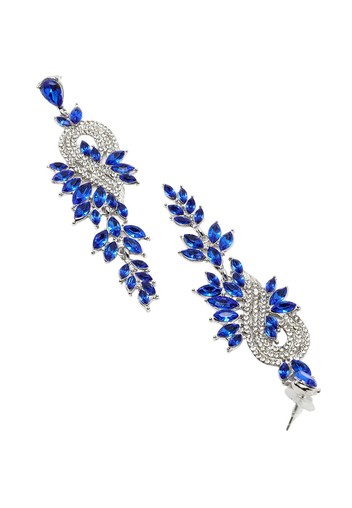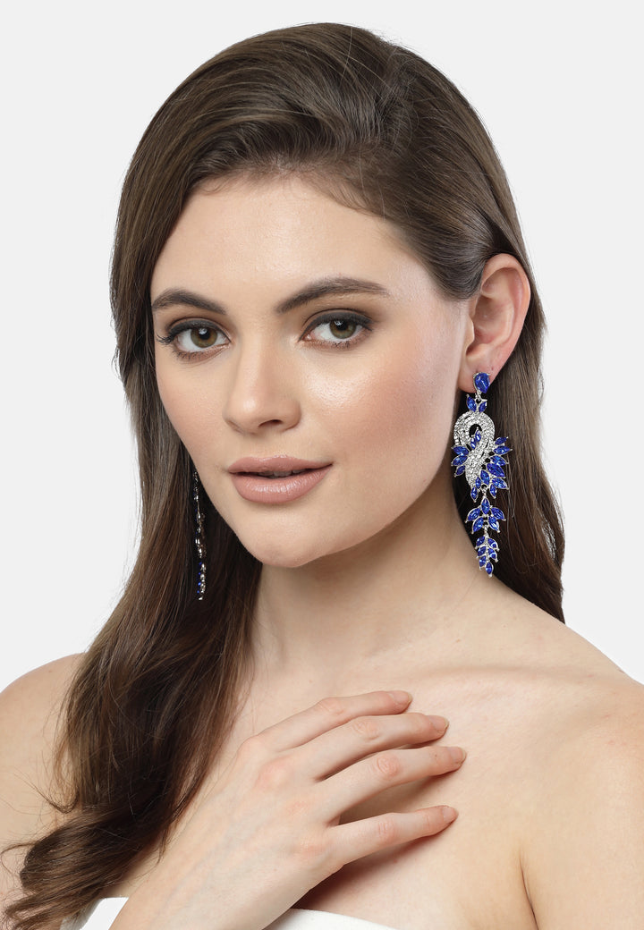 Dit prachtige paar blauwe Crystal Leaf-oorbellen is ideaal voor elke feestsetting! Met oogverblindende zilveren stenen in het midden en blauwe stenen die een delicaat bladpatroon sieren, zijn deze prachtige oorbellen gemaakt van hoogwaardige materialen. Deze oorbellen zijn ontworpen om stevig en duurzaam te zijn, met veel aandacht voor detail. Als je deze oorbellen bij welke etnische kleding dan ook draagt, zul je er prachtig uitzien.