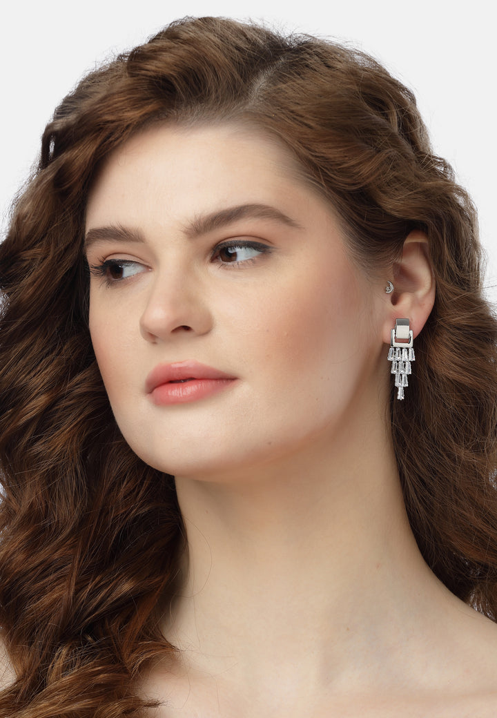 Tillverkad med en strålande kaskad av baguette-slipade stenar, som erbjuder ett fängslande och graciöst utseende. Stenarnas förskjutna mönster ger en känsla av flöde och energi, vilket förvandlar dem till ett djärvt tillbehör som utstrålar förfining och lockelse. Idealisk för att höja varje ensemble med en aning av lyx.